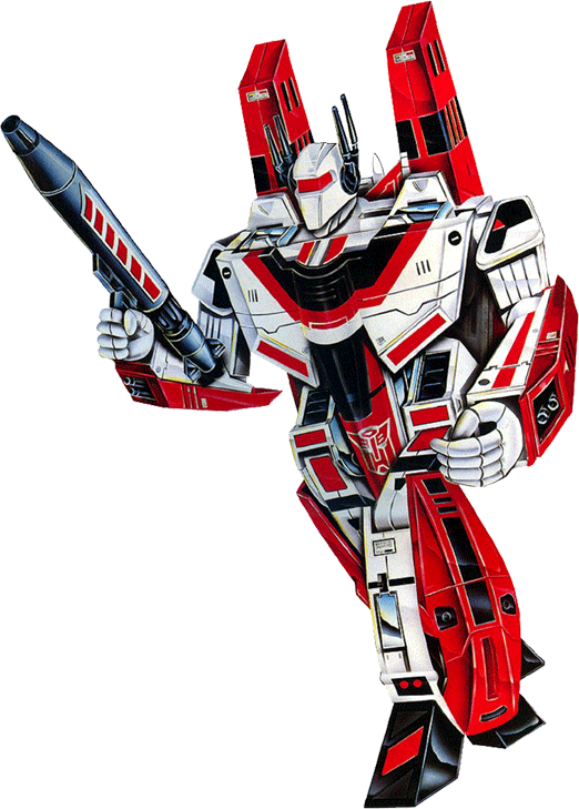 Swiftest Autobot. Daring in battle... believes victory will come via technological advancement. Adds twin scramjet modules and liquid hydrogen fuel tanks to escape Earth's gravity. Flies halfway around the world in 30 minutes. Carries 4 particle-beam cannons and heat-seeking photon missiles. Prone to mechanical failures due to advanced technology.