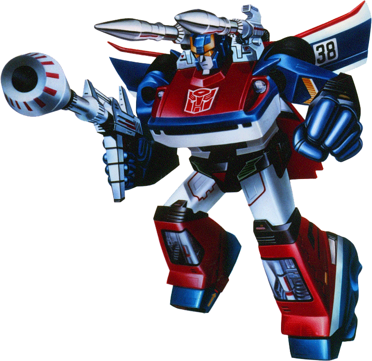Whether engaged in raging battle or friendly conversation, an ulterior purpose usually exists. Job is to lead enemy astray. Sneaky, but charming and affable... considered most devious yet most trusted of Autobots. In car mode, emits thick smoke from tailpipe... attracts to metal. In robot mode, shoots missiles which wreak havoc on enemy aircraft radar and guidance systems... electro-disrupter rifle shorts out electrical targets. | |||||||