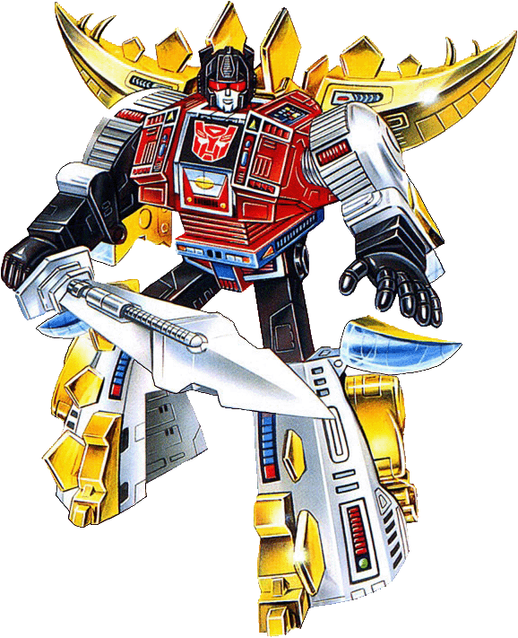 An unhappy loner of few words and fewer opinions. Finds joy only in battle. Hates his Dinobot form, longs to return to Cybertron. Large golden plates on spinal assembly are solar collectors... strength increases tenfold in sunlight. Tail can shatter 20 foot concrete cube. Armored hide resists most missiles. Vulnerable to nighttime attacks due to his weaker state. Slow... uncooperative nature hinders others from helping him. | |||||||