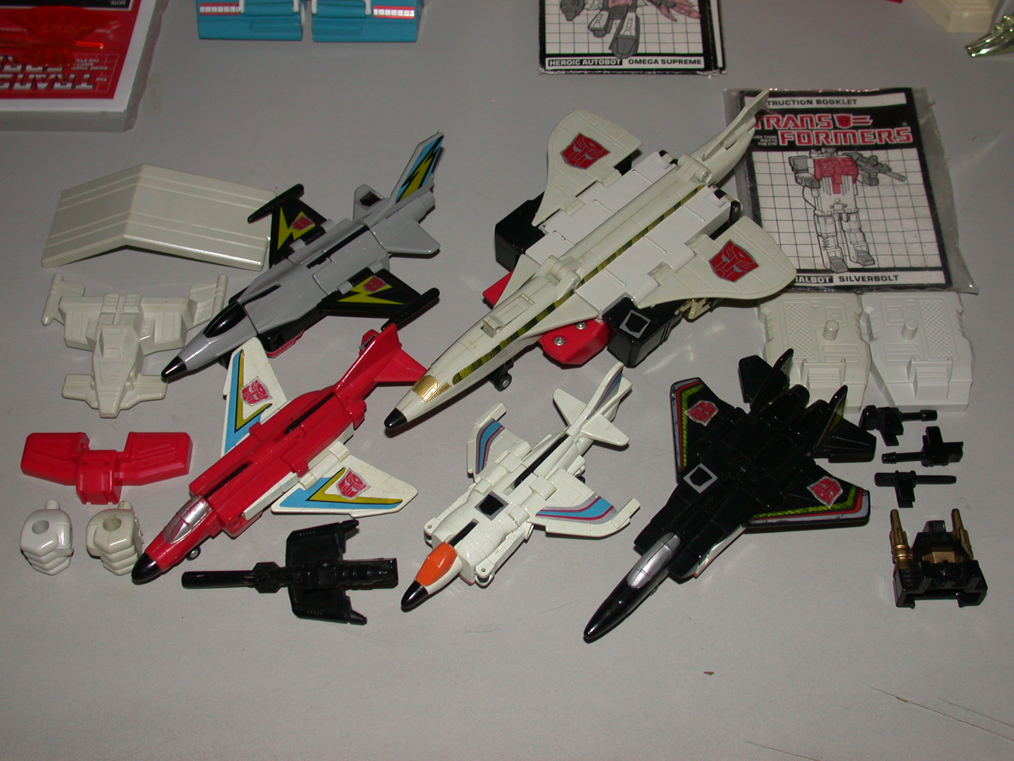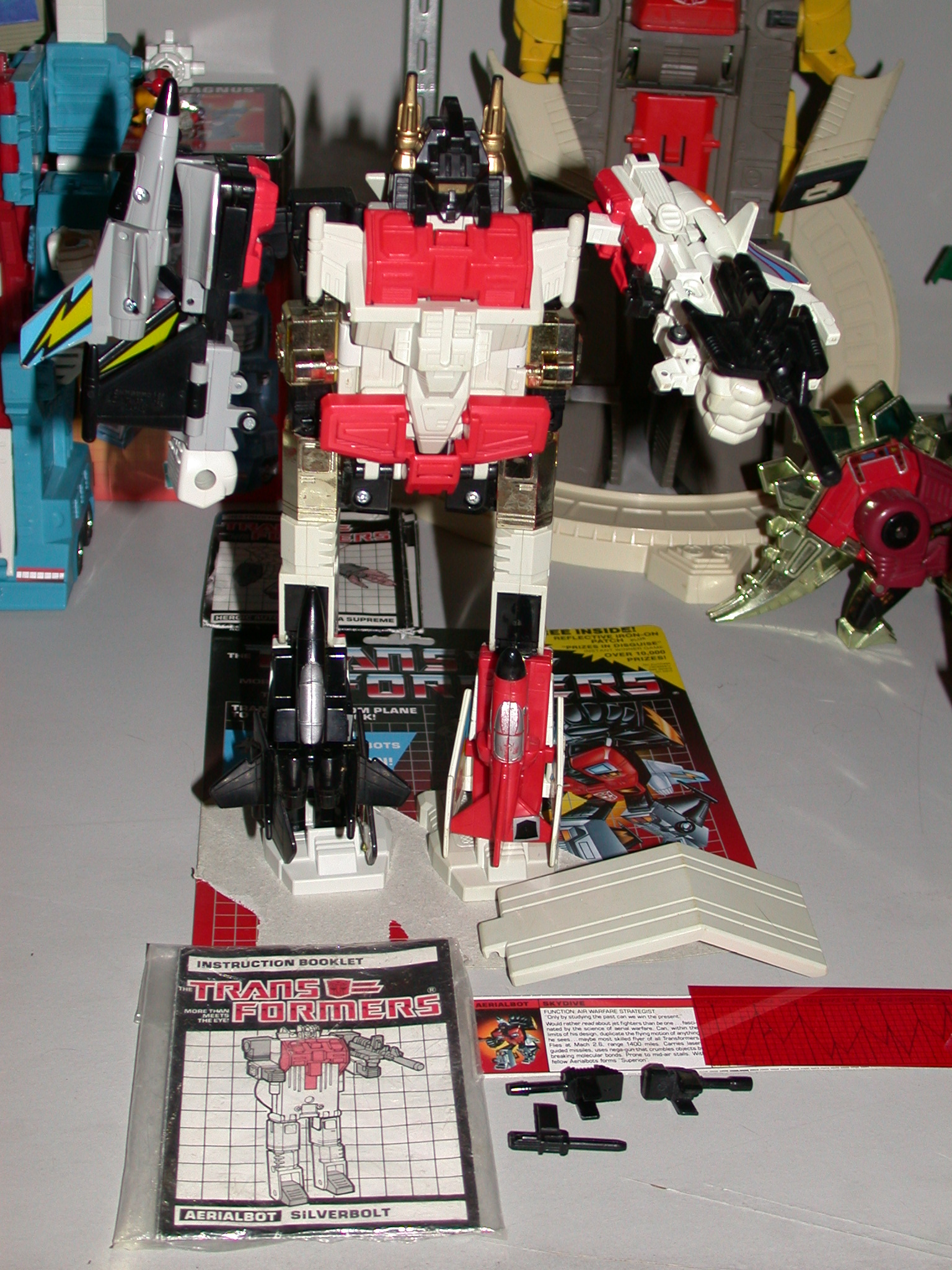 ** Superion has been probably my biggest Transformers vice throughout the years.  First off,  I got Silverbolt, Air Raid, Fireflight and Slingshot through a trade with a kid at school many years ago for Decepticon cassettes.  I will admit they were in decent shape when I got them, and all in all, I thought they were cool, but were missing both Skydive, as well as some of the parts.  It was frustrating having an almost complete Superion, but no complete.  This was all before eBay, or even the internet, so I really knew no way of tracking the rest down.