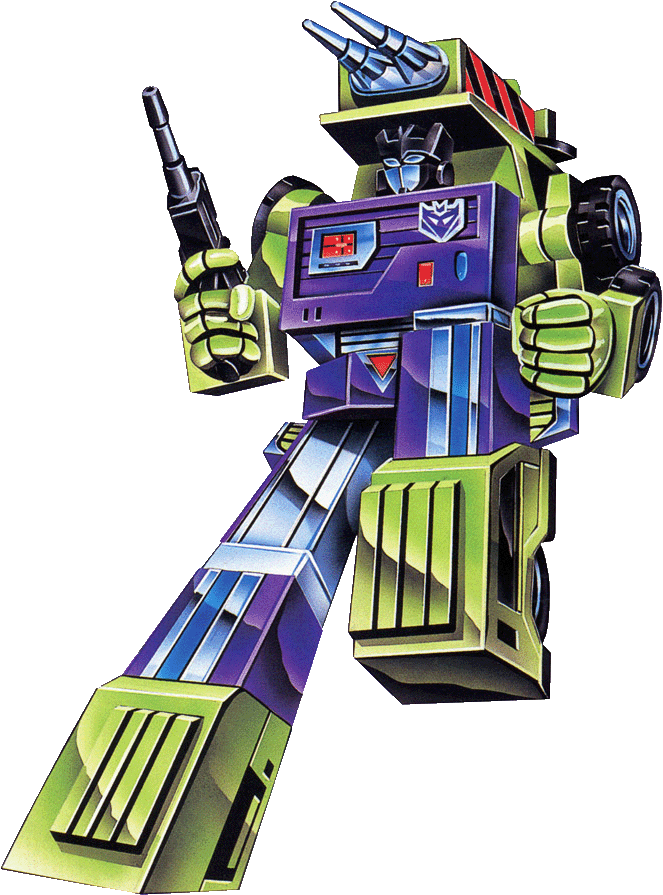 Nothing is safe from him... he will use anything from unliving rock to living robot in making new materials. Uses acids and bonding agents to reduce and recombine almost anything inside mixing drum... a chemistry lab on wheels. As left leg module, combines with fellow Constructicons to form giant robot "Devastator".
