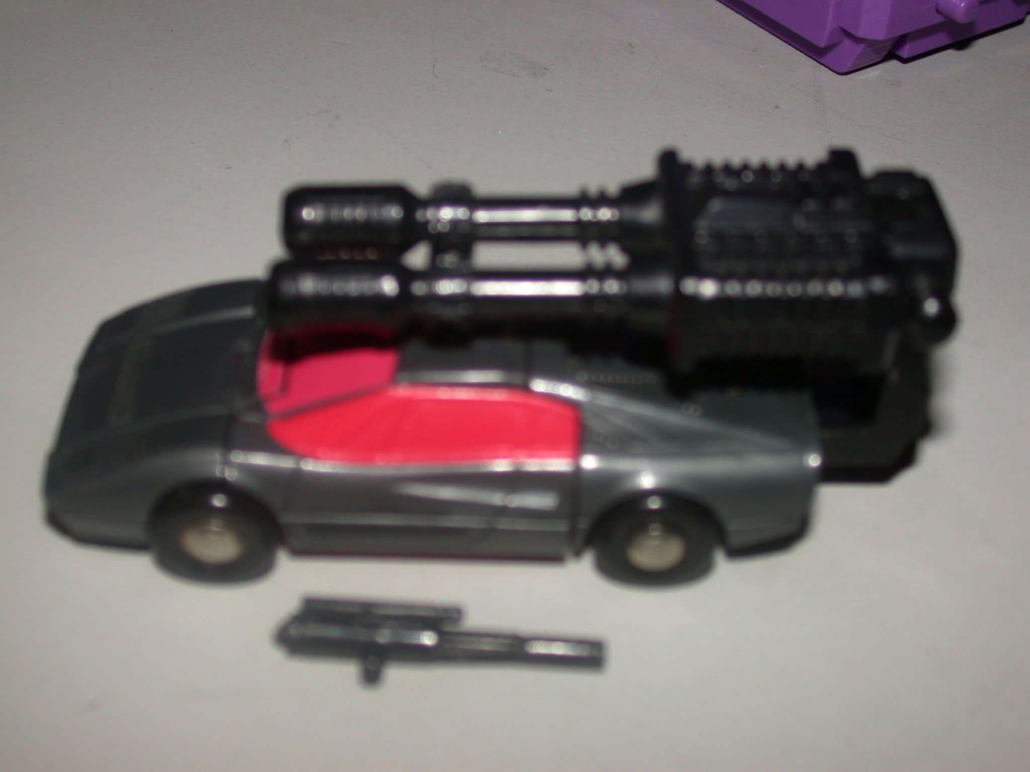Abilities: Wildrider can reach 250 mph in car mode, and has amazing maneuverability. In robot mode, he uses a scattershot gun, which can spray a fifty-square yard area with searing, ripping laser beams at a distance of ¼ mile. With it, he can demolish a small 5-story building in two minutes. He combines with his fellow Stunticons to form the giant robot "Menasor."