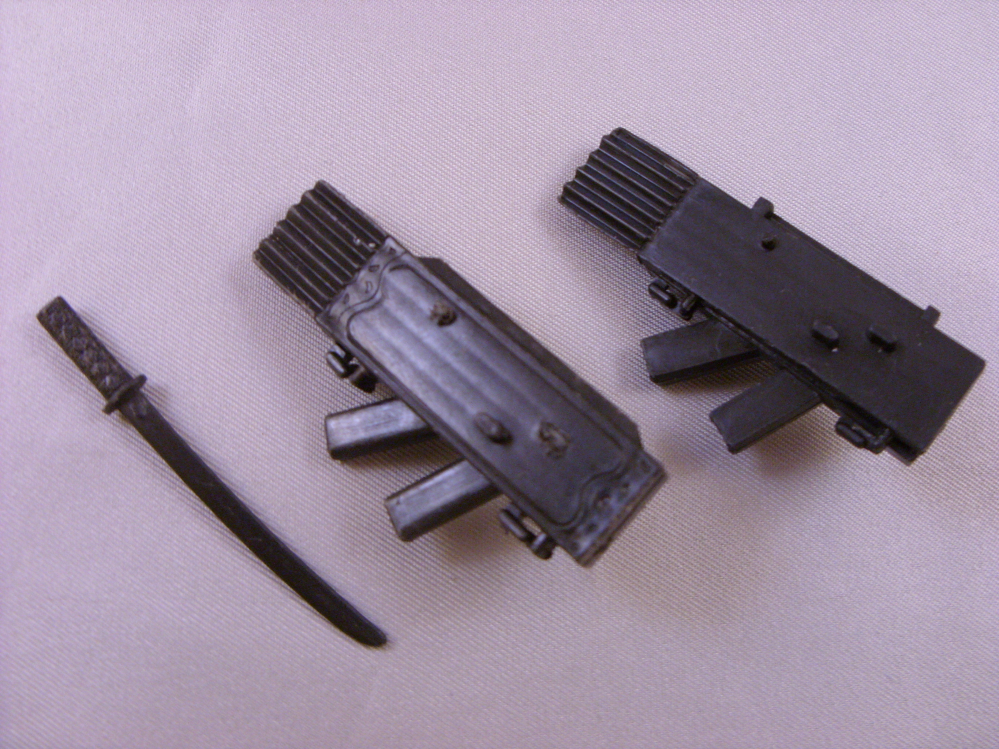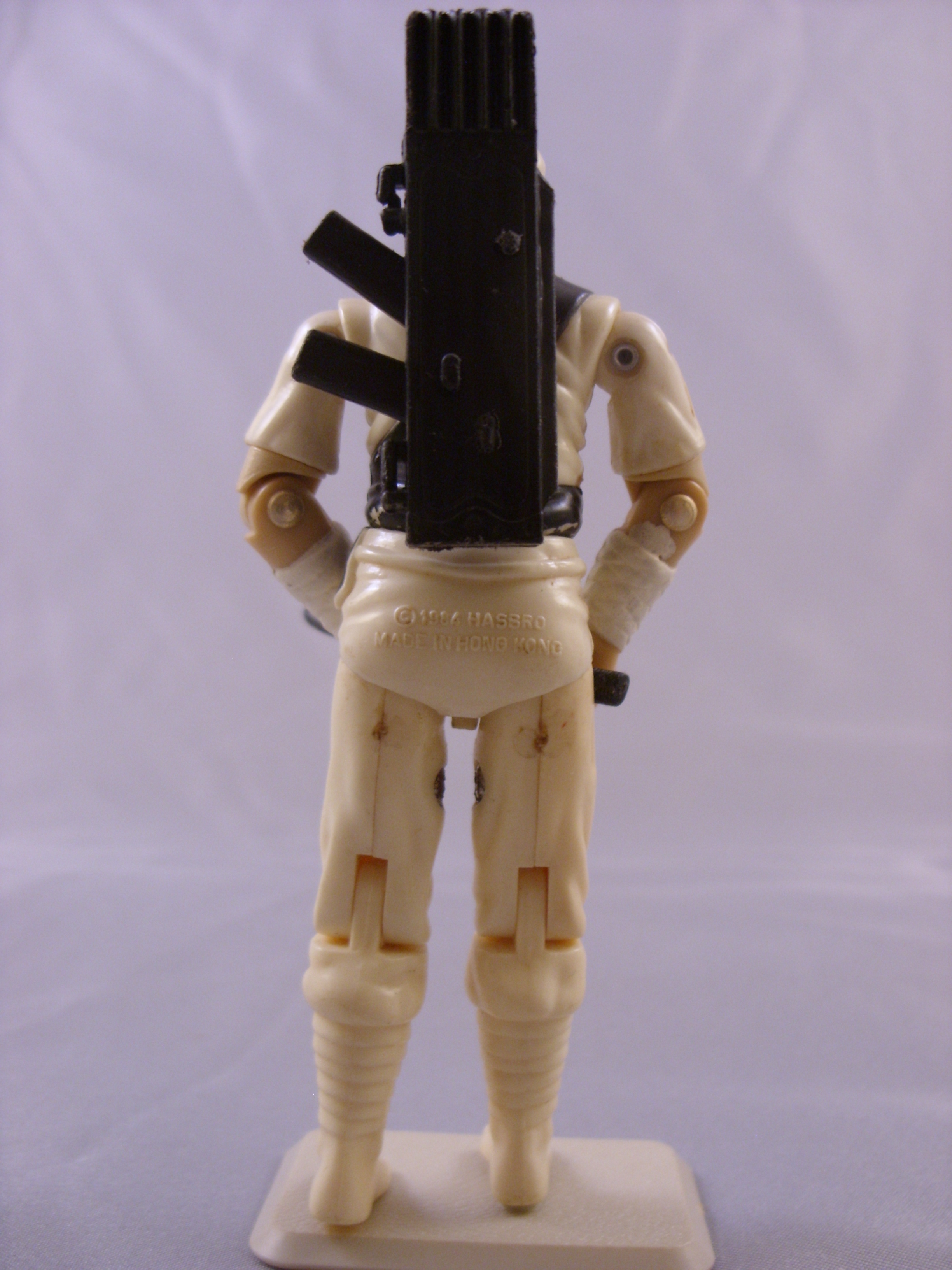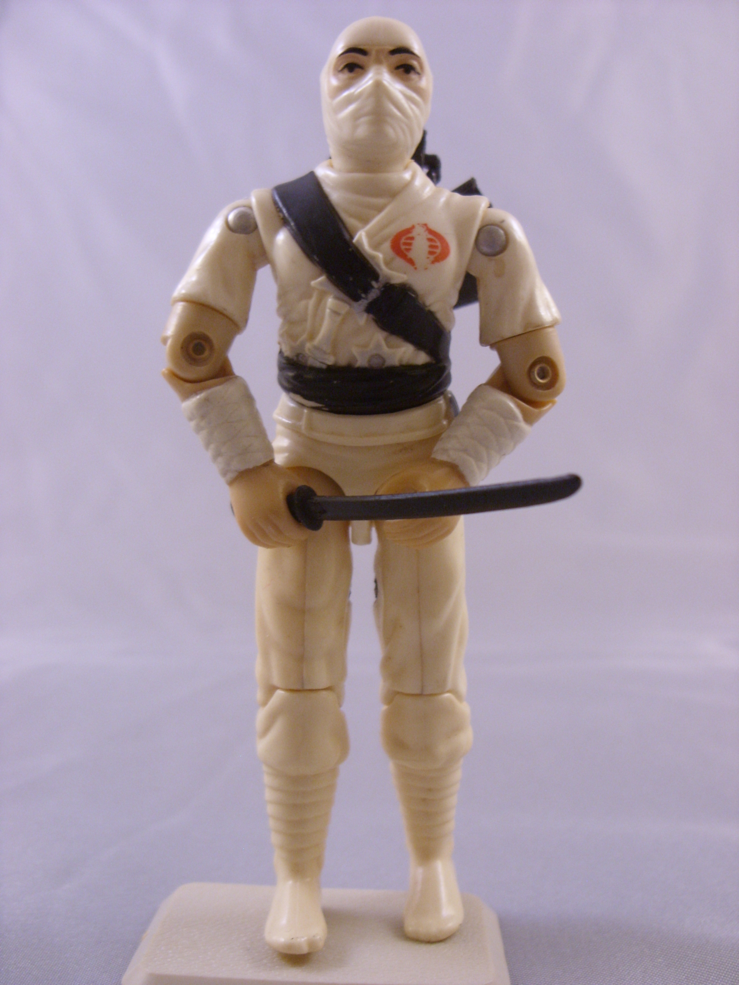 My Personal Notes: Sort of like Snake-Eyes, what kid didn't love Storm Shadow back in the '80s. He was one of my favorites and it was always fun to see the rivalry between him and Snakes. I didn't have his toy for a while, but finally got him from my cousin who gave him to me. I got him with his backpack and long sword, but he was missing his short sword, bow, and nunchuks. I bought a new backpack for him cheap when buying some other Joe weapons and accessories I needed. Come to find out, it isn't the same. Instead of closing in half like a briefcase, it separates into a separate piece. It also isn't as detailed. It is probably a fake, but I keep it with him anyway... I have had and have enjoyed this guy since childhood. |