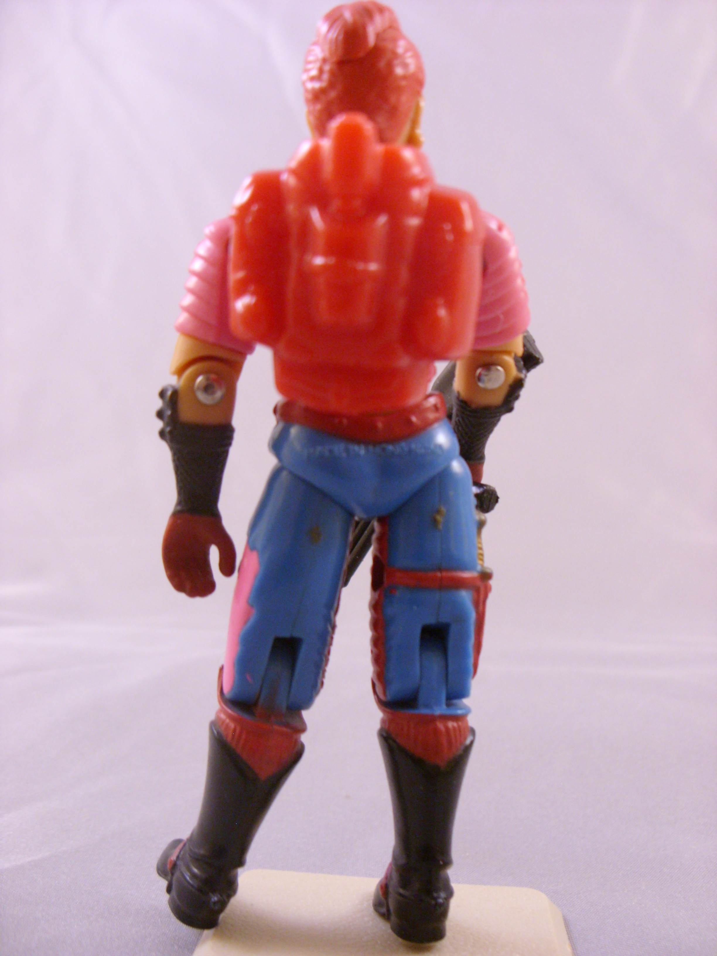 My Personal Notes: Zartan was so cool as a kid that I also had to get Zandar and Zarana, his brother and sister. They weren't as cool, but I liked them a lot none the less. I find humor in their sort of florescent pastel colors, which was kind of the cool, rebellious theme of the '80s. Zarana is complete with her rifle and back pack. |