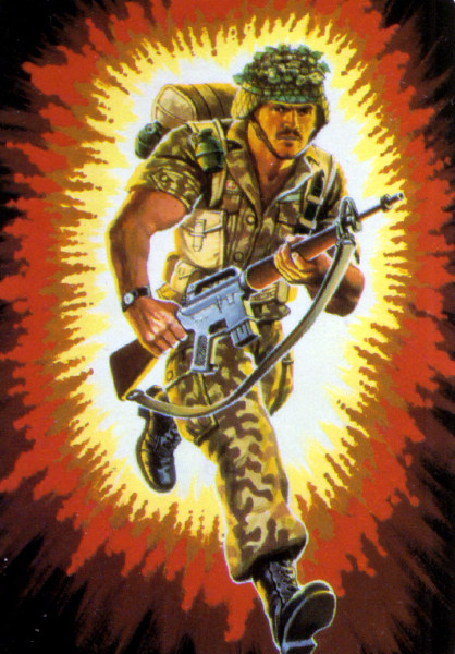 Code Name: FOOTLOOSE Meyers was Valedictorian of his high school class, captain of the track team and an Eagle scout. He was going for his degree in Phys. Ed. on a state scholarship when he suddenly dropped out, moved to the coast and became quite weird for about three years. He was standing on the boardwalk in Venice pondering something cosmic when the utter pointlessness of his existence hit him between the eyes like a runaway freight train. "I think I'll join the army." he said, and promptly did. Took basic and AIT at Fort Benning, graduated jump school and desert training unit. Qualified expert all NATO and Warsaw Pact small arms. "Some of the Joes think that Footloose is out there, but all he's trying to do is find himself. He's the All-American Boy who got lost on the way to the fair and he's simply trying to go home any which way he can. Most folks think they know who they are and where they're going...They're the dangerous ones!"